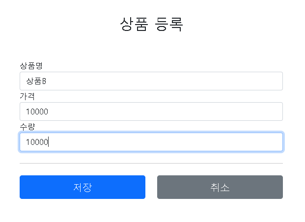 ItemSaveForm의 필드에 사용된 Bean Validation에 대해서는 설명하지 않는다. (궁금하면 구글링하길 바란다)