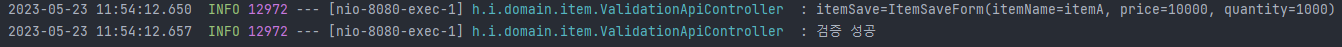 컨트롤러가 호출되면 saveItem 객체를 log로 남기고 바인딩 실패 유무에 따라 클라이언트에 보여 줄 view가 달라진다.