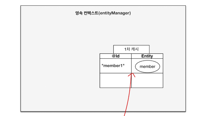 아래는 Member 엔티티를 persist 하였을 때, 1차 캐시에 저장되어 JPA에 의해 관리 중인 상태이다.