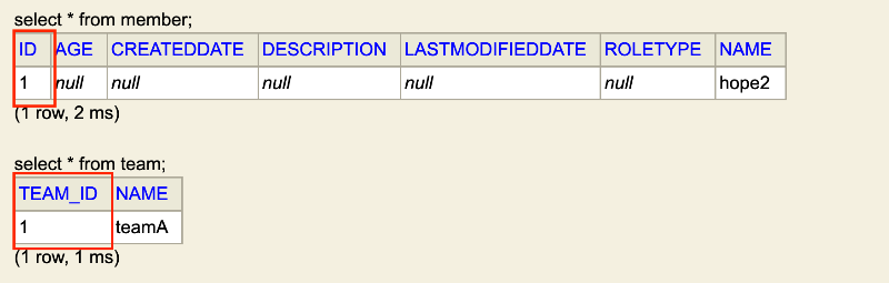 Member와 Team은 SEQUENCE 전략을 사용하기 때문에 Id 값을 지정할 필요가 없다.