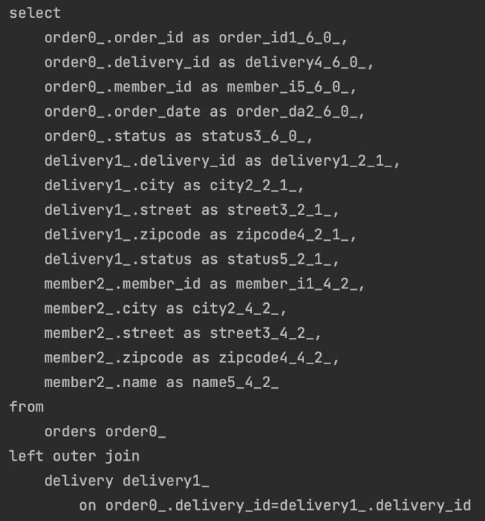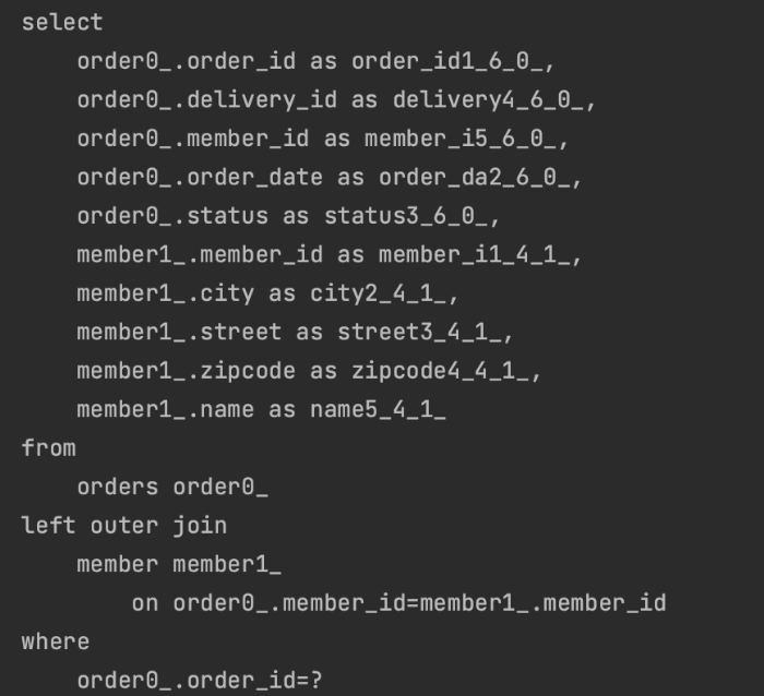 위 쿼리문을 보면 필요로 하는 Entity만 조회함을 알 수 있습니다.