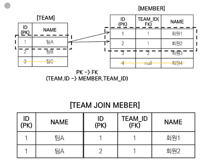 - DB 입장에서는 ID가 1인 Team과 이를 참조하는 Member를 join으로 조회