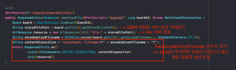 - UrlResource를 사용하여 "file: 서버 경로"를 등록한다