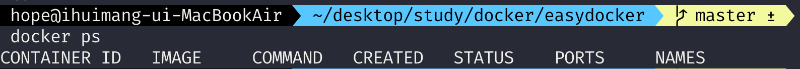 위에서 클라이언트가 명령어를 실행했습니다. 예를 들어 실행하고 있는 컨테이너를 조회한다고 가정하겠습니다. 사용자는 $ docker ps를 입력하여 존재하는 컨테이너를 모두 조회합니다. 저 같은 경우에는 현재 실행된 컨테이너가 존재하지 않네요.