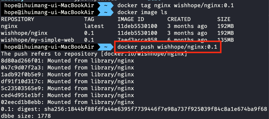 public 레지스트리에 이미지를 업로드 하기 위해서는 아래 명령어를 사용합니다.