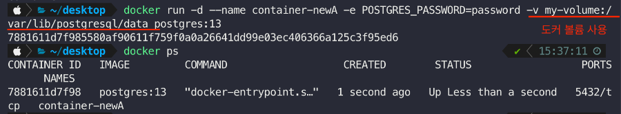 이전에 사용한 도커 볼륨을 그대로 사용합니다.