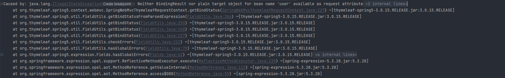 user 객체에 대한 BindingResult가 존재하지 않는다.