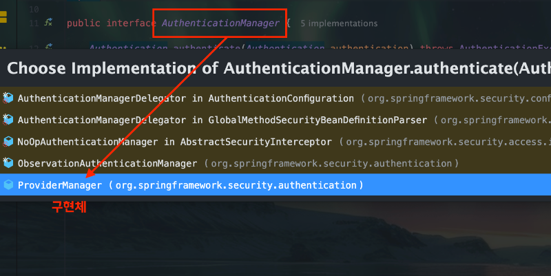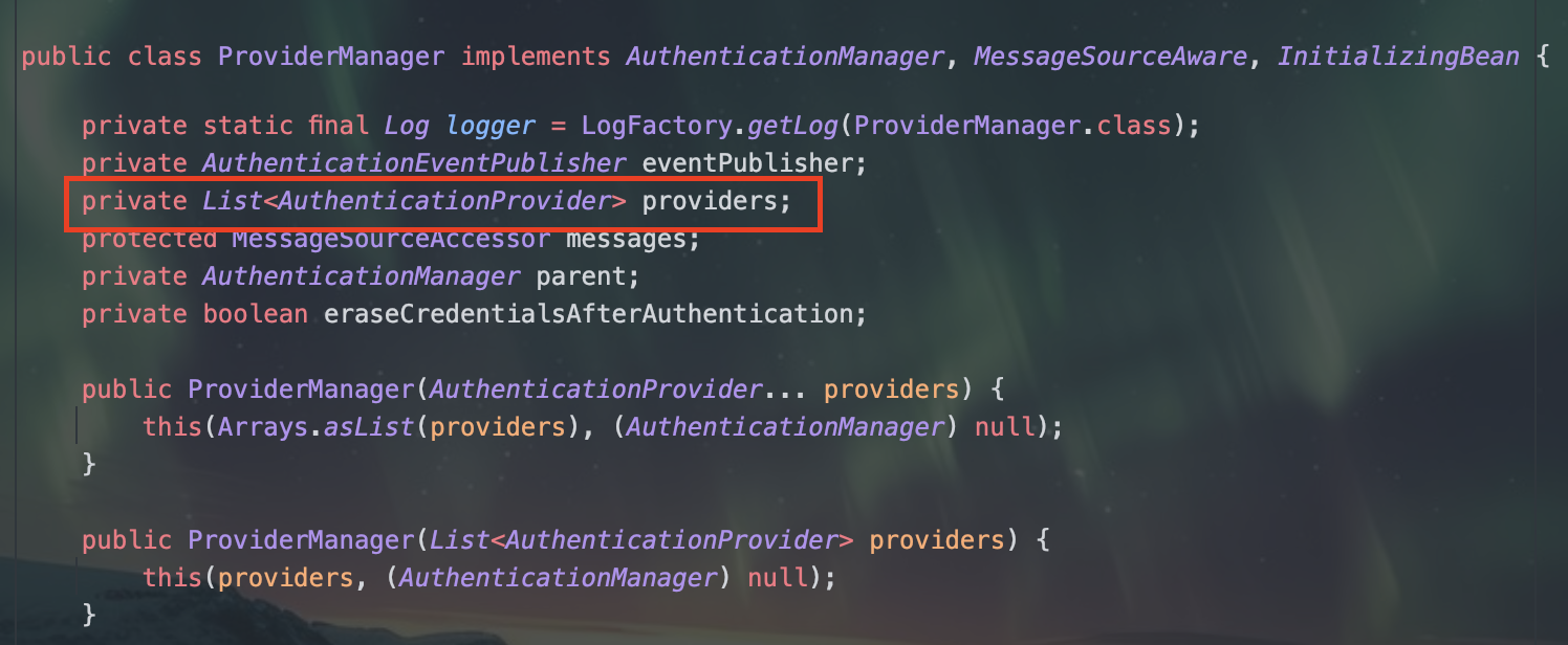 AuthenitcationManager의 구현체로 ProviderManager가 있는데, 사용자 인증을 처리할 수 있는 providers를 저장하고 있습니다.