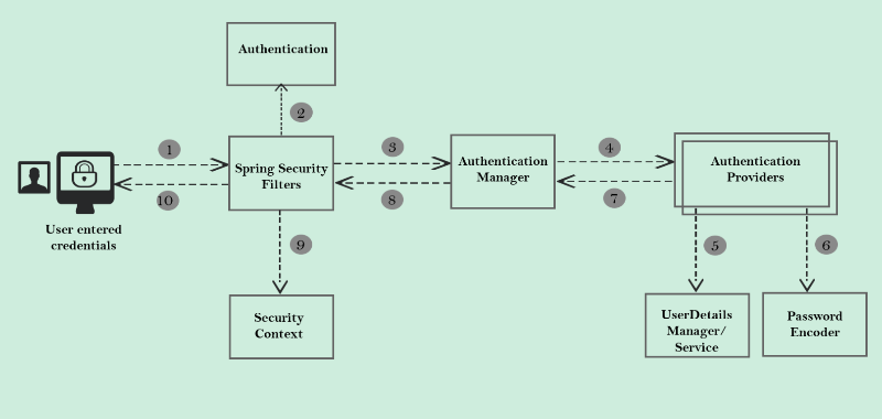 UserDetails에 저장된 사용자의 password와 DaoAuthenticationProvider의 PasswordEncoder를 통해 비밀번호가 일치하는지 확인합니다. 일치하다면 Authentication 객체를 생성하여 Security Context로 반환합니다.