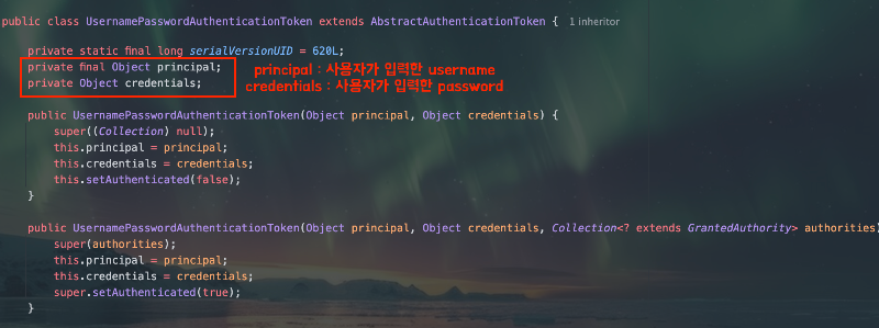가로챈 username과 password는 UsernamePasswordAuthenticationToken에 저장됩니다.