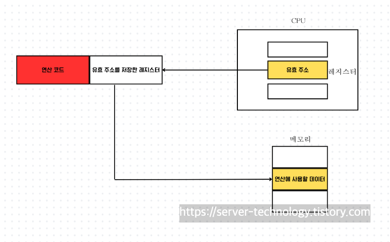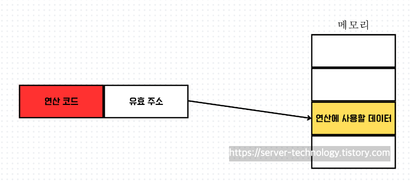 - 직접 주소 지정 방식 : 연산을 수행할 데이터가 저장된 위치(유효 주소)를 저장한다.
