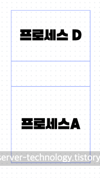사진을 보면 프로세스 A와 D가 물리 메모리에 할당된 공간의 크기가 다르다. 여기서도 외부 단편화, 내부 단편화가 발생한다.