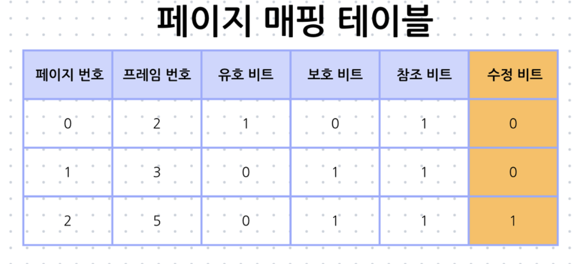 - 비트 0 : 쓰기 작업이 발생하지 않은 페이지