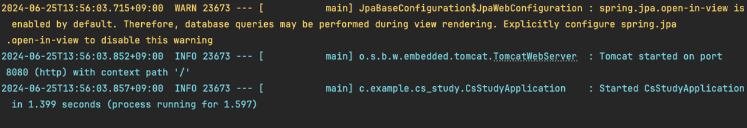아래 메시지를 보면 애플리케이션이 정상적으로 실행되었음을 알 수 있다.