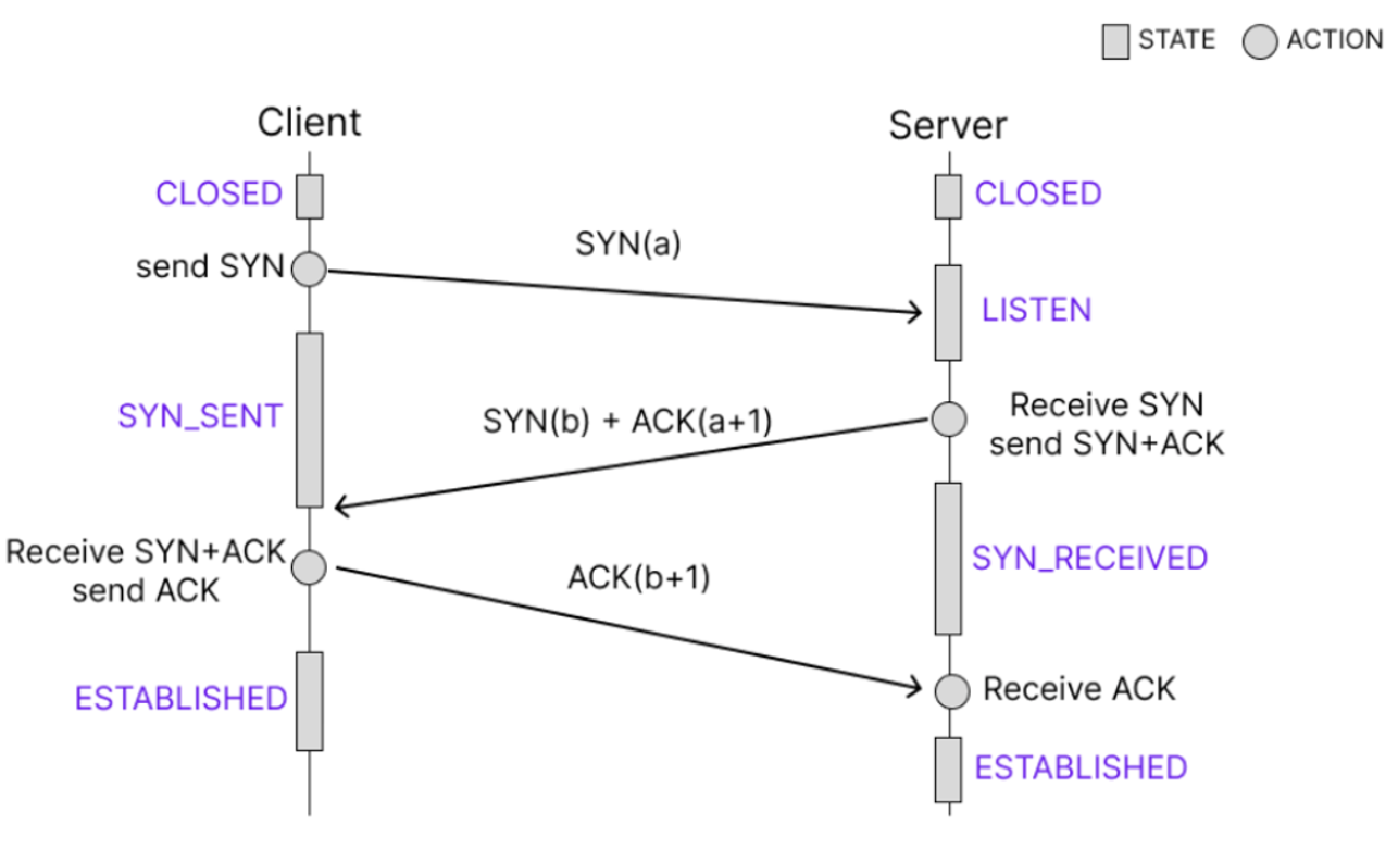 발신자는 SYN 패킷을 보내고 난 후, 수신자로부터 SYN/ACK 응답을 기다리는 SYN_SENT 상태가 된다.