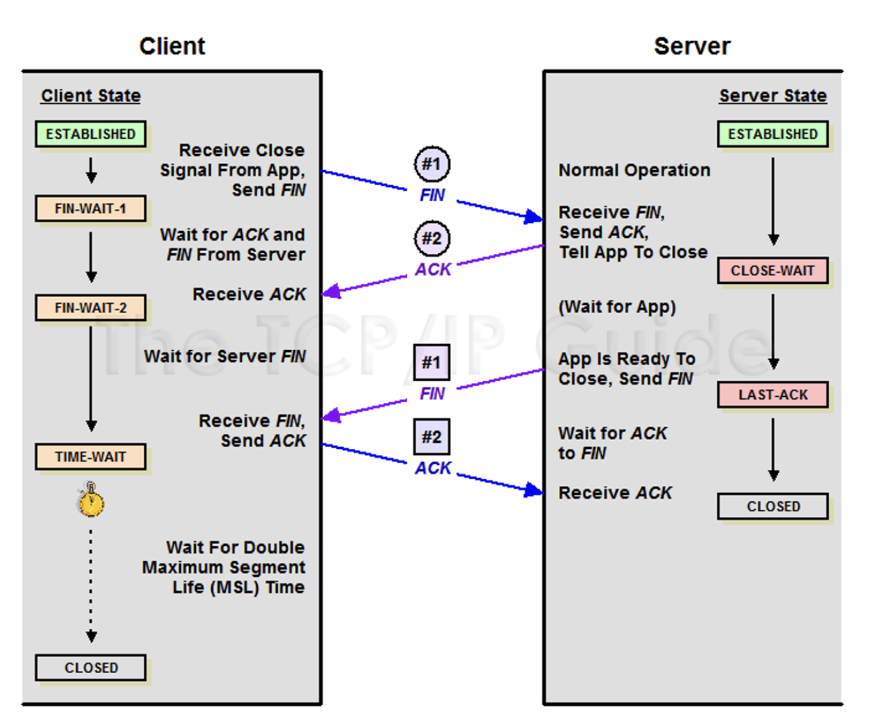 3-way-handshake의 경우 TCP 연결을 위해 사용했다면, 4-way-handshake는 연결을 종료하기 위해 사용된다.
