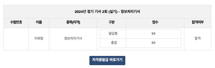 저는 컴퓨터공학 4학년 학부생이며 2024년도 2차 정기 기사 시험을 쳤습니다.