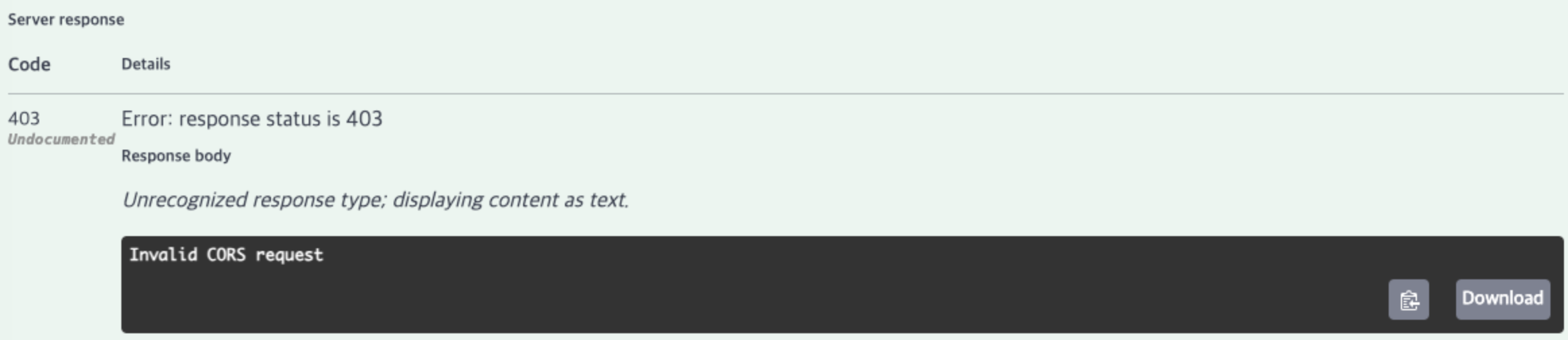 그런데 GET 요청을 제외한 나머지 HTTP 메서드에 대해서 전부다 403 Invalid CORS request 오류가 발생하였다. 도메인에 맞춰서 Cors와 Swagger 설정을 했음에도 해결되지 않았다.