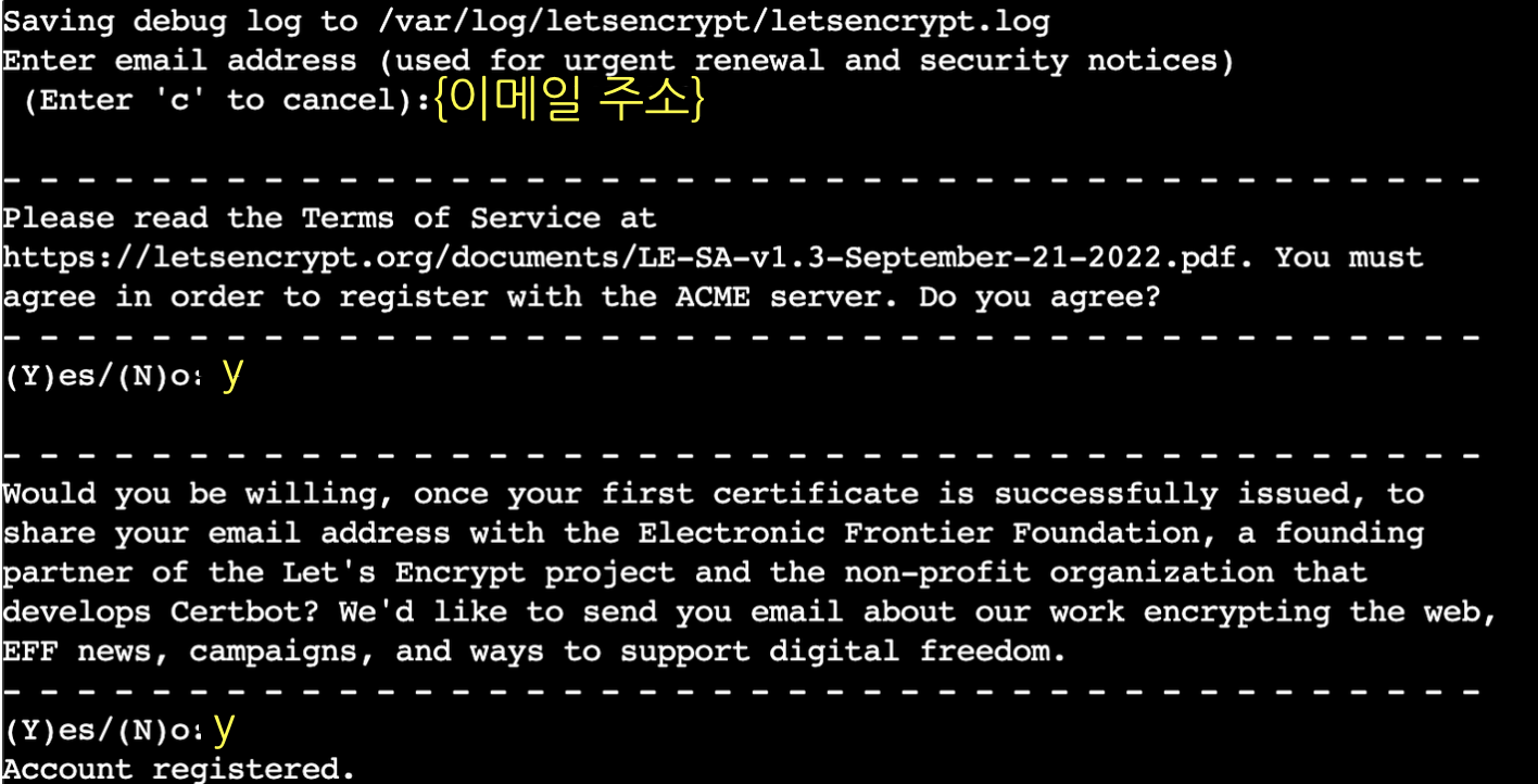 EC2 내부에 Certbot을 설치하여 Let`s Encrypt SSL 인증서를 발급받을 수 있도록 한다.