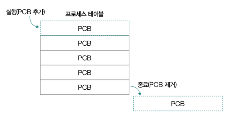 운영체제가 메모리에 적재된 여러 개의 프로세스를 관리하기 위해서는 각 프로세스를 식별할 수 있는 정보가 커널 영역에 저장되어야 한다. 프로세스를 식별할 수 있는 정보를 PCB(Process Control Block)이라고 한다. 프로세스가 생성될 때마다 PCB가 생성되어 커널 영역에 저장되고, 프로세스가 종료된다면 PCB가 삭제된다.