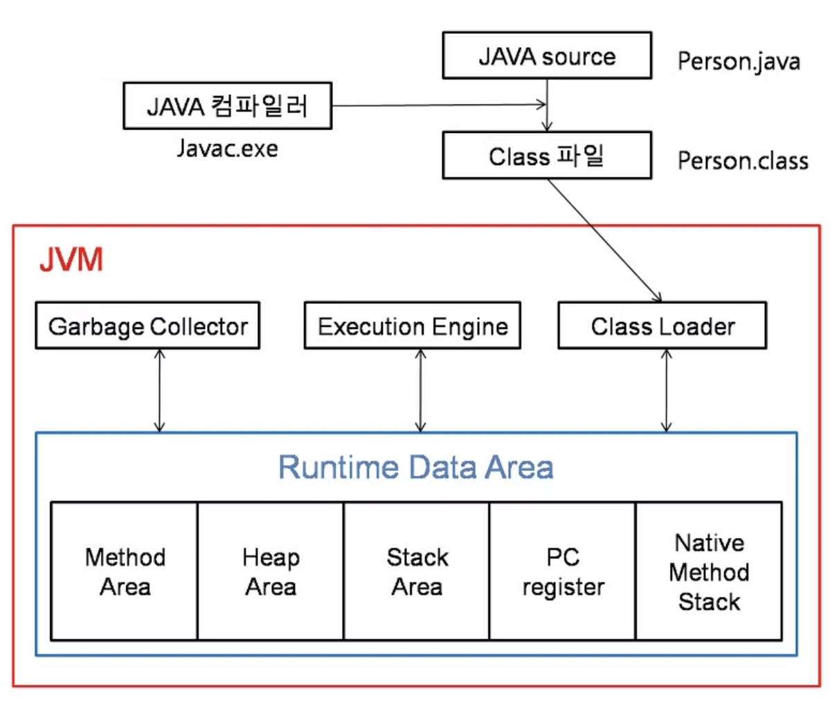 - 클래스 로더(Class Loader)가 클래스 파일(.class)을 읽어 들여 JVM의 메모리 영역인 Method Area에 로드한다.