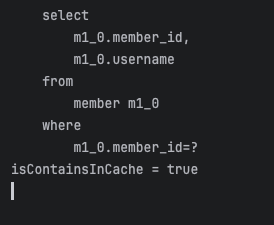 DB에서 엔티티를 조회하는 순간 select 쿼리가 발생하며, 조회된 엔티티는 1차 캐시에 저장된다. 이후 동일한 트랜잭션 내에서 동일한 엔티티를 조회할 때는 데이터베이스가 아닌 1차 캐시에 저장된 엔티티가 반환된다. 또한, EntityManger를 사용하여 조회한 엔티티가 1차 캐시에 저장되어 있는지 확인한 결과 true가 반환되는 것을 확인할 수 있다.