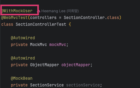 따라서, 테스트에서 인증 정보가 없어 발생하는 401 에러를 해결하기 위해 @WithMockUser 애너테이션을 사용하여 가짜 사용자 정보를 추가하였다.