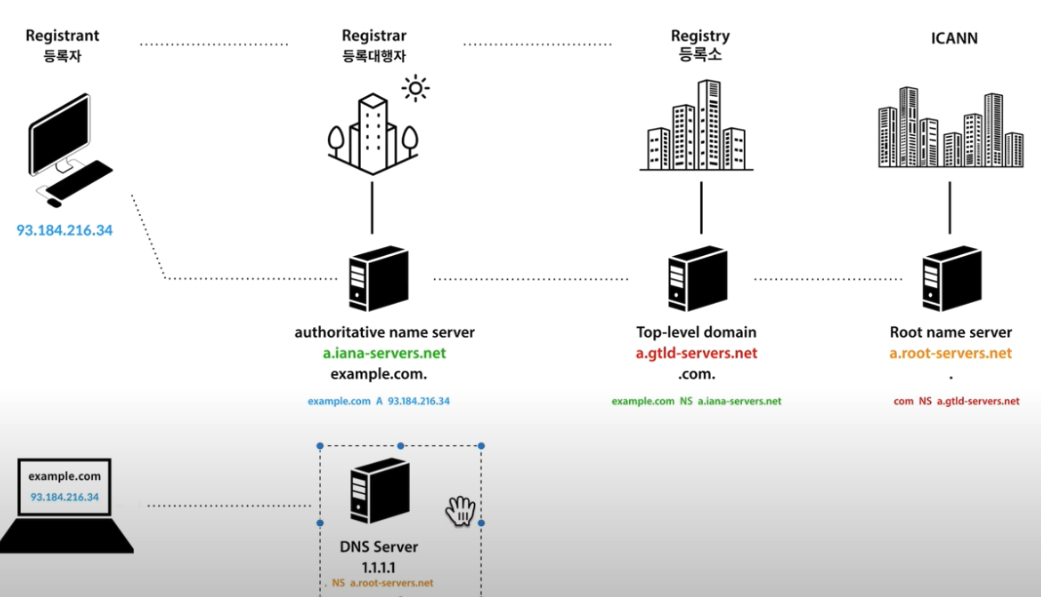 DNS(Domain Name System)은 사람이 읽을 수 있는 도메인 주소를 기계가 이해할 수 있는 IP 주소로 변환하는 역할을 한다. 예를 들면, www.example.com으로 입력한 도메인 주소를 xx.xxx.xx.x IP 주소로 변환한다.