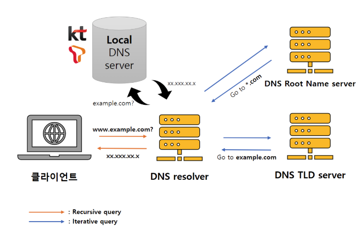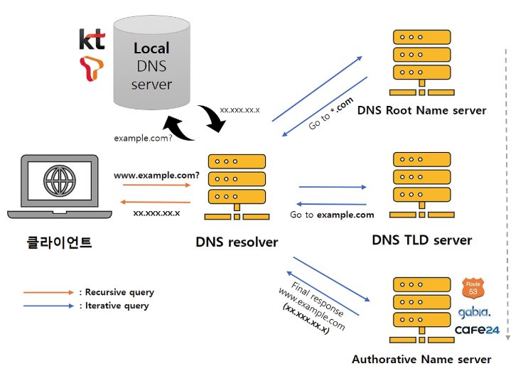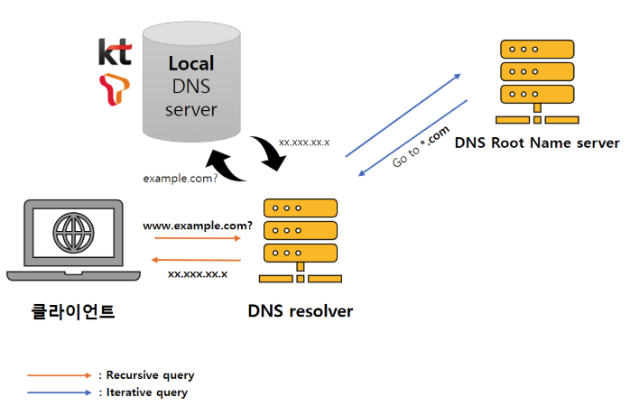 로컬 DNS 서버는 ISP가 관리하는 DNS 서버로서, 사용자의 인터넷 회선에 따라 사용하는 DNS 서버가 다르다.