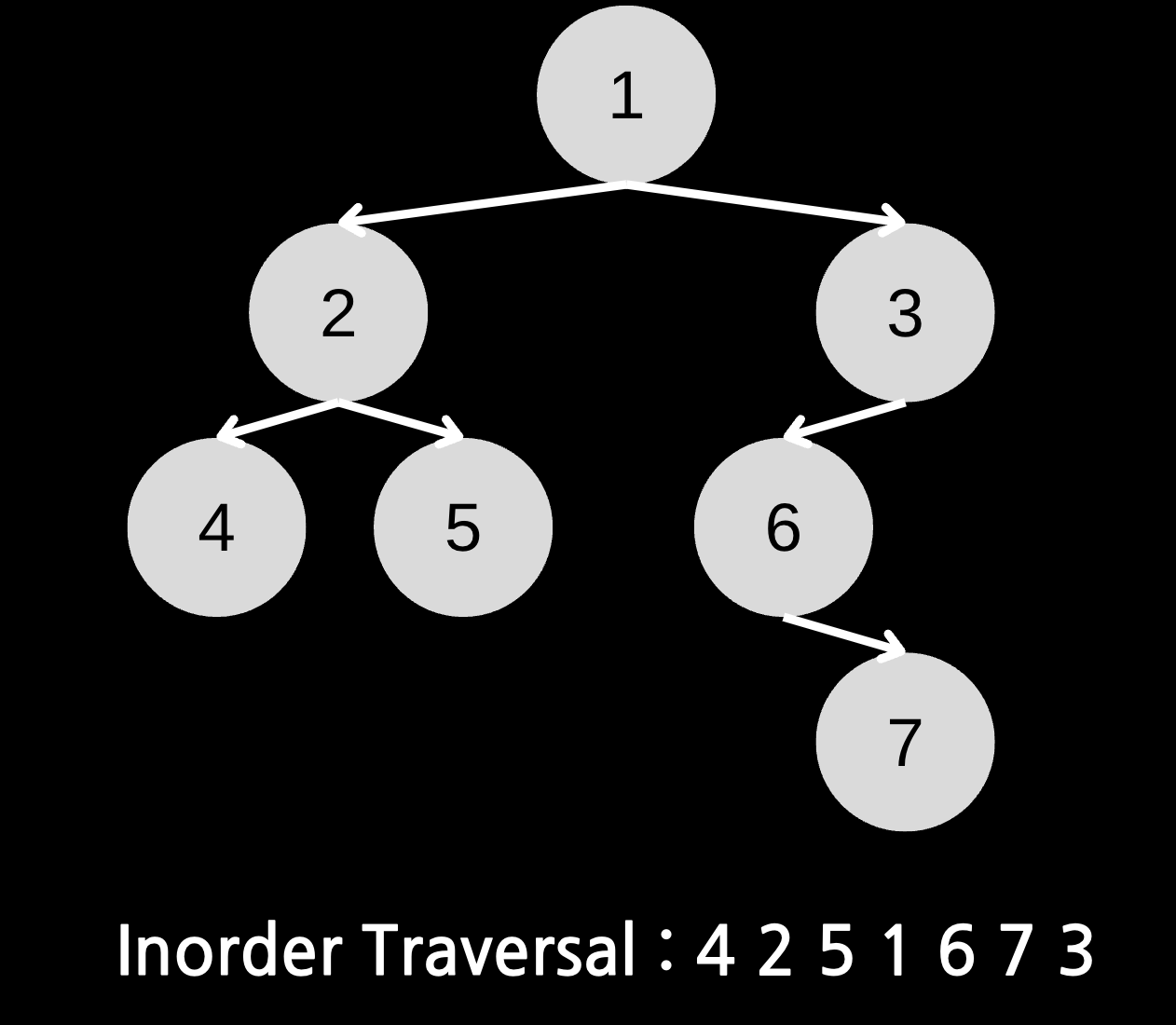 - 그림 2의 중위 순회 결과 : 4 -> 2 -> 5 -> 1 -> 6 -> 7 -> 3