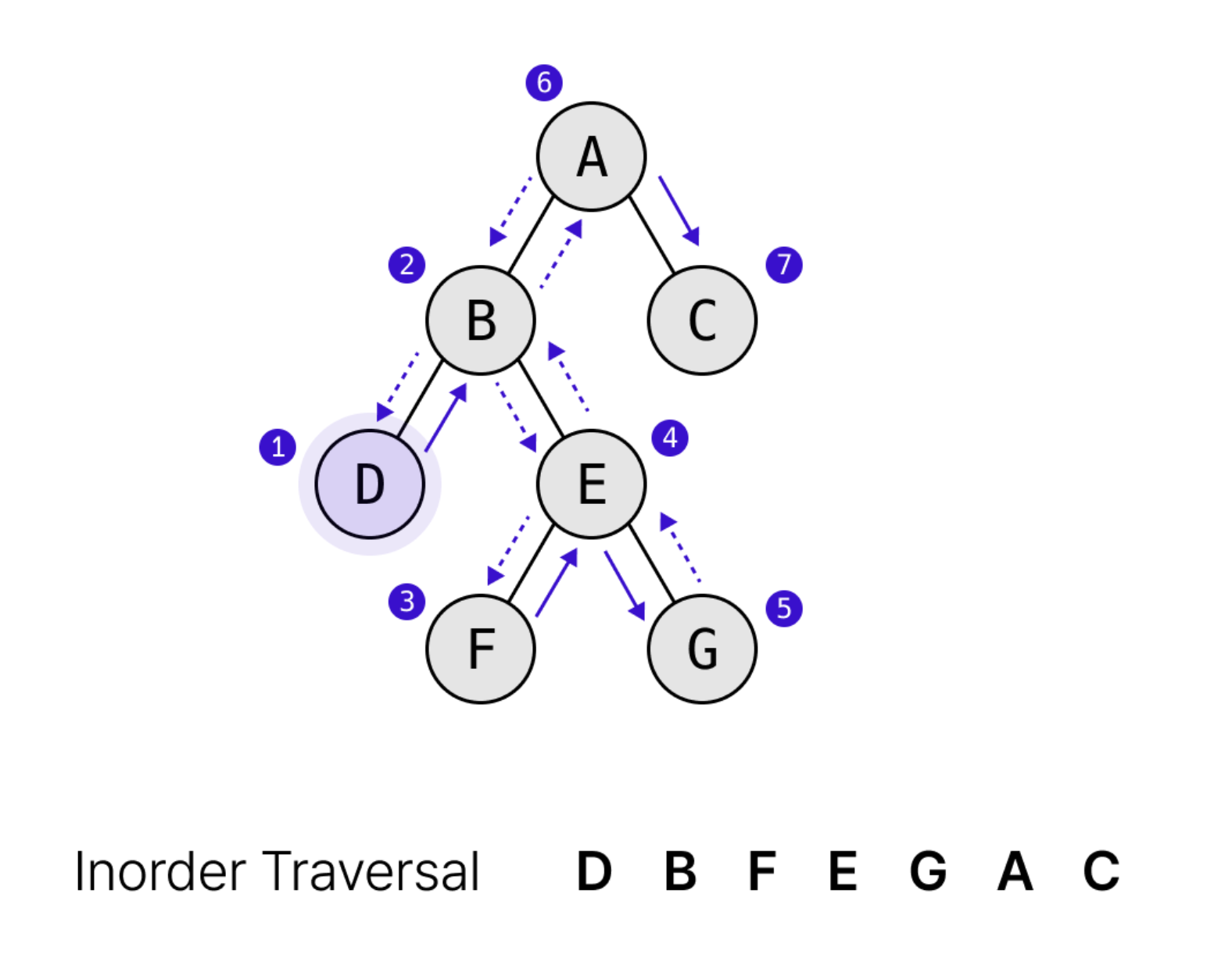 - 따라서 그림 1의 그래프가 존재할 때, 중위 순회 결과는 D -> B -> F -> E -> G -> A -> C이다.