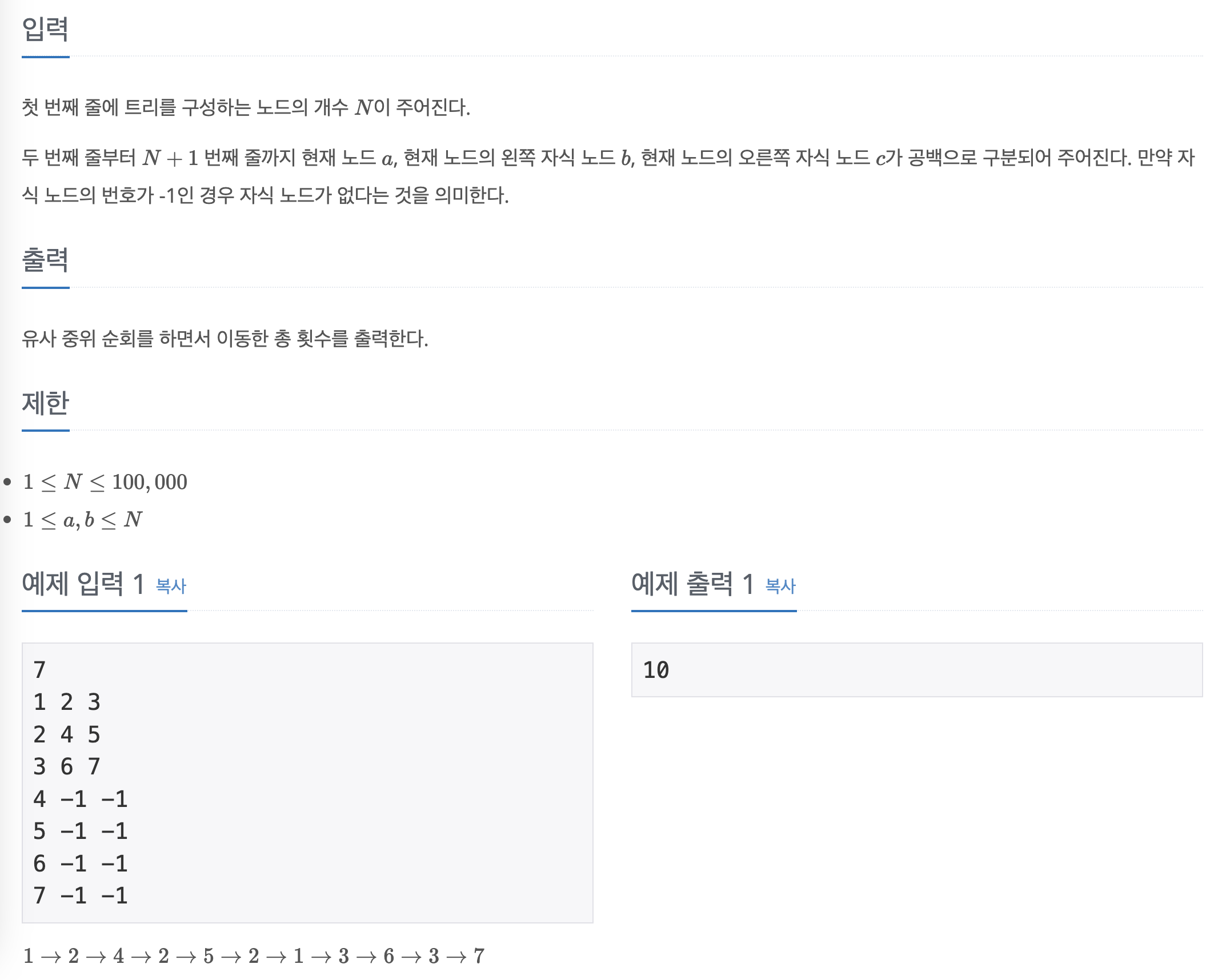 - 루트 노드는 반드시 존재하며, 루트 노드는 1이다.