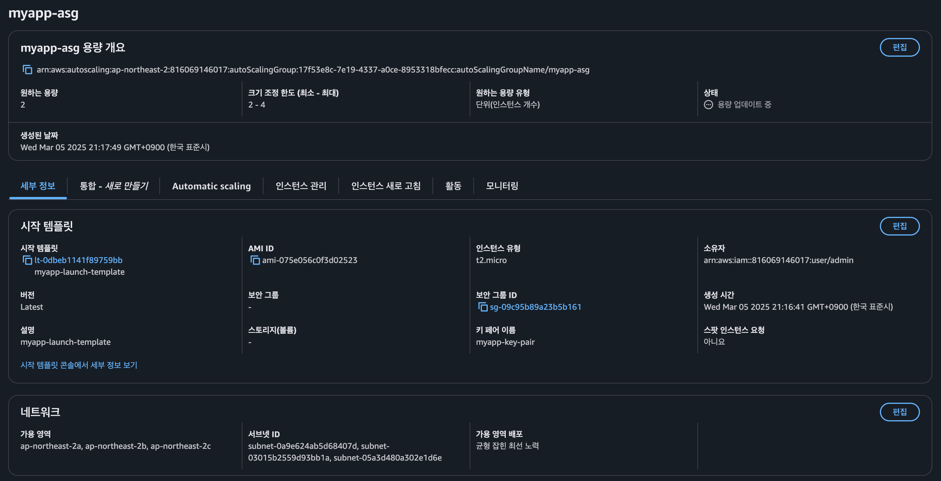 3. ASG(Auto Scaling Group) 및 시작 템플릿(Launch Template) 생성