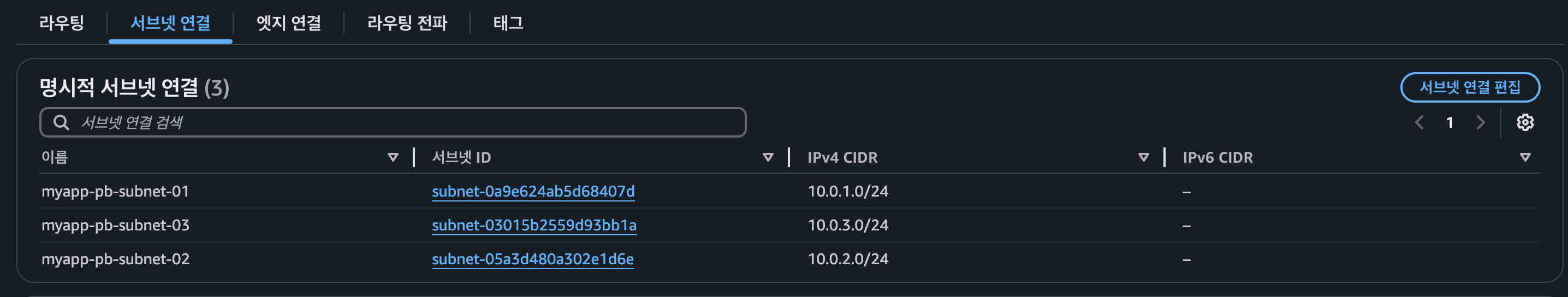 - 3개의 Public 서브넷 명시적 연결